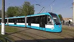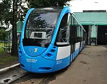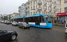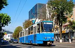 The Vinnytsia Tramway (Ukrainian: Вінницький Трамвай, translit.: Vinnytskyi Tramvai) network is the part of the public transportation system that since 1913 serves Vinnytsia, the administrative center of the Vinnytsia Oblast, Ukraine. The tram system has a narrow rail gauge of 1,000 mm (3 ft 3+3⁄8 in) that only exists in Ukraine in the cities of Lviv, Zhytomyr and Yevpatoria, as well as Vinnytsia. The system currently consists of 21.2 km of tracks.[1]