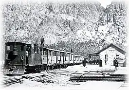 On the Chilean side the section from 'Santa Rosa de Los Andes' to 'Hermanos Clark' was opened in 1906, and extended to Portillo in February 1908. The entire line was first opened to traffic in 1910.[2] By then the company had been taken over by the British-owned Argentine Transandine Railway Company.[3][4]
