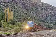 The Transandine Railway (Spanish: Ferrocarril Trasandino) was a 1,000 mm (3 ft 3+3⁄8 in) metre gauge combined rack (Abt system) and adhesion railway which operated from Mendoza in Argentina, across the Andes mountain range via the Uspallata Pass, to Santa Rosa de Los Andes in Chile, a distance of 248 km.