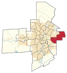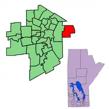 The riding is named after and contains Transcona, a neighbourhood in the easternmost tip of the city of Winnipeg. It is bordered to the west by Radisson, Southdale, and St. Boniface, and in all other directions by the rural riding of Springfield-Ritchot.[1]
