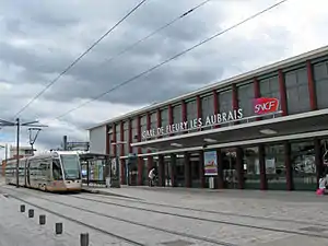 The main station for long distance services is Fleury-Les Aubrais-Orléans which lies 3 kilometres (1.9 mi) to the north of the city. The station is served by trains to Paris, Blois, Bourges, Brive-la-Gaillarde, Limoges, Nevers, Perpignan, Toulouse, Tours and Vierzon.