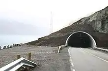 The newest developments of the Faroese transportation network are the sub-sea tunnels. In 2002 the tunnel between Streymoy and Vágar—the latter is the airport island—was finished, and in 2006 the Norðoyatunnilin between Eysturoy and Borðoy was finished.[4] A toll, payable at petrol stations, of 170 DKK (130 DKK in June 2013) is charged to drive through these two tunnels; the others are free. Now more than 85% of the Faroese population is accessible by automobile.[5] On 19 December 2020 the Eysturoyartunnilin between Streymoy and Eysturoy opened for traffic.