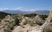 Travertine Hot Springs are located two miles Southeast of Bridgeport, California on several sizeable travertine terraces, overlooking views of the High Sierra mountains.[2] Volunteers have built a series of primitive rock pools and wood-and-concrete enclosures to contain the water, and to control temperature by diverting the flow through stepped channels.[2] The springs are located on California State Park land.[3]
