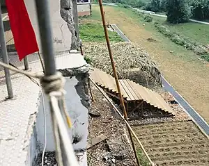 After cooperating with non-governmental organization Global Artivists Participation Project,[2] the Taipei City Government[3] developed the area into an example of environmentally sustainable urban community.[4] With the policy of preservation and revitalization, the old settlement unfolded a new vision of an artivist compound which would respect the existing fabric of the community while fulfilling the regeneration concept of "symbiosis" to incorporate production and ecology in communal living and ushering in the program of an international youth hostel and creative ideas of art to further cultural exchanges with broader international communities.[5]