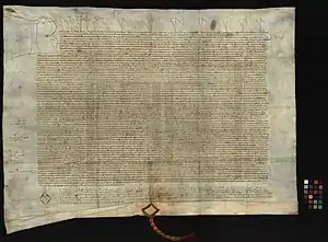 The Treaty of Windsor was a diplomatic alliance signed between Portugal and England on 9 May 1386 in Windsor and sealed by the marriage of King John I of Portugal (House of Aviz) to Philippa of Lancaster, daughter of John of Gaunt, 1st Duke of Lancaster.[1] With the victory at the Battle of Aljubarrota, assisted by English archers, John I was recognised as the undisputed King of Portugal, putting an end to the interregnum of the 1383–1385 Crisis.[1] The Treaty of Windsor established a pact of mutual support between the countries.[1]