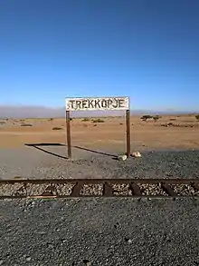 Trekkopje was the site of the Battle of Trekkopjes, a World War I battle aimed at preventing South African troops from rebuilding the railway line. A war cemetery, Trekkopje Cemetery (22°17′17″S 15°06′07″E / 22.288°S 15.102°E) features 16 graves of railway protection troops from this battle.[2]