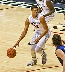 As a freshman, Kell posted 5.6 points, 2.8 rebounds, and 1.6 assists per game and was named to the Maui Invitational all-tournament team.[3] He helped San Diego State reach the NCAA Tournament as freshmen and beat St. John's in the first round.[4] Kell averaged 12.6 points, 3.7 rebounds and 1.4 assists per game while starting all 38 games as a sophomore. He was named to the First Team All-Mountain West Conference.[5] As a junior, Kell was named to the Third Team All-Mountain West Conference.[6] He was also named (NABC) All-District 17 Second Team for the second straight season. Kell led the Aztecs in points per game (13.2), assists (2.9), steals (1.4) and free-throw percentage (.766) as a junior.[7]