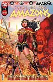 "Trial of the Amazons" is a seven issue crossover event from DC Comics written by Becky Cloonan, Michael W. Conrad, Jordie Bellaire, Vita Ayala and Joelle Jones. The story details a civil war between the Amazons, and has Wonder Woman crossing paths with Nubia, Yara Flor, Cassie Sandsmark, Donna Troy, Hippolyta and Artemis of Bana-Mighdall. The event received positive reviews, although the ending received criticism for it being rushed.[1]