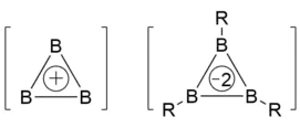 - ↑ Wrackmeyer, Bernd (2016). "A Cyclotriborane Dianion and the Triboron Cation: "Light Ends" of the Hückel Rule". Angewandte Chemie International Edition. 55 (6): 1962–1964. doi:10.1002/anie.201510689. ISSN 1521-3773. PMID 26765534.