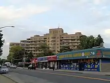 During the construction of the new Queens Hospital, the city sought to sell or redevelop the sites of several now-obsolete buildings, including Triboro Hospital.[72][73] In 2003, Margaret Tietz Nursing and Rehabilitation Center sought to lease T building.[4][74] They planned to create a retirement community within the T Building called "Skyline Commons".[2][4] The project was originally envisioned by the company in 1999.[75] The development would consist of 143 independent living units, 19 units for "enriched housing" (integrated housing for multiple people),[76] and a nursing home.[77] In addition, there would be several recreation rooms, a library, auditorium, restaurant, community center, and a dialysis center.[2][78] It was promoted as provided apartment-style living, with hotel amenities, and nursing home-style care.[75][79][80] The project was approved by New York State Department of Health in August 2007.[77][81] Skyline Commons was cancelled, however, in January 2009, due to the 2007–2008 economic crisis.[4][75][78] Under the plans, 70% of the apartments had to be sold in order to begin construction; only 50 units had been sold by September 2008.[75]