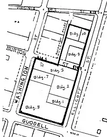 The company continued to expand. In 1922 the manufacturer became the supplier of automatic windshield wiper systems to Cadillac.[2] Initial work expanding the factory began in 1924, when the Buffalo architectural and engineering firm of Harold E. Plumer and Paul F. Mann were brought on to erect a modern four-story reinforced concrete building, known as Building #2, a short distance north of the ice house building. Additional buildings followed in the ensuing decades, including two stories added above the original ice house. Later buildings replaced Buildings #4, 5, and 6, and building #10 was built prior to 1923, but was purchased by Trico in 1946. By the completion of Building #8 in the late 1930s, Trico had taken up the entire block bounded by Burton, Washington, Goodell, and Ellicott Streets. Construction dates for the different parts of the building are shown in the table below.