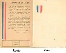 The Tricolour Legion (French: Légion Tricolore), which existed almost entirely on paper between 22 June 1942 and 28 December 1942, was an initiative of the Vichy government under the auspices of Pierre Laval and his Secretary of State Jacques Benoist-Méchin to politically and militarily co-opt the Legion of French Volunteers Against Bolshevism (Légion des volontaires français contre le bolchevisme (LVF)), created on 8 July 1941. The latter in effect had the status of a private legal group under the exclusive control of French collaborationists, and its combat wing was integrated into the German Army as Infanterie Regiment 638.