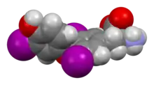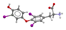 - ↑ Dietrich JW, Brisseau K, Boehm BO (August 2008). "[Absorption, transport and bio-availability of iodothyronines]" [Absorption, transport and bio-availability of iodothyronines]. Deutsche Medizinische Wochenschrift (in German). 133 (31–32): 1644–1648. doi:10.1055/s-0028-1082780. PMID 18651367.
