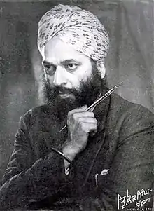 Trilok Singh Chitarkar (1914-1990) was a versatile Indian painter. He has unique style of presenting himself through variety of themes - Sikh religion, history, culture, folk lore, love legends, portraits, social evils, nature, illustration of Gurbani, Shabads, visuals in Punjabi Encyclopedia and books.[1] He was well versed with deep knowledge of Gurbani, history and religion. He knew many languages i.e. Gurmukhi, Punjabi, Hindi, English, Urdu, Persian, Assamese and Bengali.[1] He translated articles from Bengali to Punjabi and published these in the book titled Bangla De Daab in 1974.[1] The Artist was honoured in 1973 by the Chief Minister, Punjab,India Giani Zail Singh at a state level function organised at his residence, Chitralok, Patiala.[2] Language department, Punjab published a book in Punjabi-Chitralok's Contribution to Art and released on the 70th birthday of the artist, 10 December 1984 at a special function organised in Central Library at Patiala for his contribution to Art.[1]