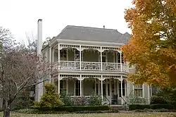 The Trimble House is a historic house at 518 Center Street in Lonoke, Arkansas. It is a large 2+12-story wood-frame structure, with a tall gabled roof. A large gabled section relieves the left side of the gable, and a gable section projects from the front, from which the entry porch, also gabled, projects. Built in 1916, it is a fine example of Craftsman architecture, designed by Charles L. Thompson.[2]