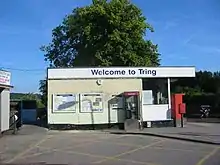 Tring railway station is 1.5 miles (2.4 km) outside the market town of Tring, close to the Grand Union Canal but actually nearer to the village of Aldbury in Hertfordshire, England. Situated on the West Coast Main Line, the station is now an important marshalling point for commuter trains from here for most stations to London Euston.