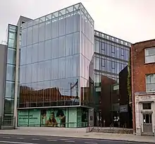The new €80 million 11,400 square metre Trinity Business School building was opened in 2019 and includes an innovation and entrepreneurial hub, a 600-seat auditorium, restaurant spaces for up to 200 people, smart classrooms and a rooftop conference room. It is a near zero energy building, with some 500sq m of photovoltaic panels installed on the roof contribute to the electrical provision of the building and offsetting 35 tonnes of carbon per annum. Water for toilets is provided by recycled rainwater.