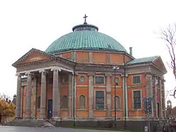 The Trinity Church (Swedish: Trefaldighetskyrkan, alternate, "German Church") is located at Karlskrona in Blekinge, Sweden. Along with the Karlskrona Admiralty Church (Amiralitetskyrkan), the church is situated in the main square, (Stortorget), at the center of the island of Trossö.