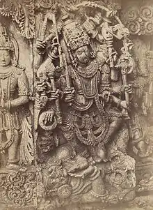 Tripurasura (Sanskrit: त्रिपुरासुर) is a trio of asura brothers named Tarakaksha, Vidyunmāli and Kamalaksha, who were the sons of the asura Tarakasura. These three began to perform severe tapasya. They were then granted boons by Brahma to have three forts: gold, silver, and iron, which angered the Devas. Vishnu then made a new religion to make them evil, and the objective of killing the asuras was taken upon by Lord Shiva, which took three days on the battlefield, finally killing Tripurasura and destroying the three cities. This occurred on the full moon day in the Kartik month and therefore the day is celebrated as Tripurari Pournima.[1]