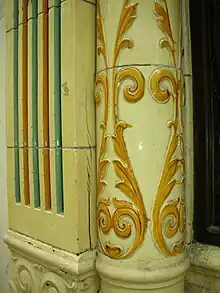 The Trocadero, 17 Temple Street, Birmingham, England, currently a pub, is a dazzling demonstration of the use of coloured glazed tile and terracotta in the post-Victorian era of architecture.