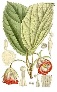 Six species belong to that genus. Some authorities have classified much more species but these are either in doubt or synonyms of other plants. The similar Atlantic genus Trochetiopsis was until 1981 included herein[3] but actually Helmiopsis might be a closer relative of Trochetia (as is also suggested by biogeography).[4] The formerly recognized species Trochetia richardii was reclassified as Helmiopsis richardii. Trochetia thouarsii was first synonymized with Trochetia pentaglossa and later reclassified as Nesogordonia thouarsii. Both plants are from Madagascar.
