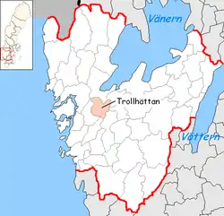 Trollhättan Municipality (Trollhättans kommun or Trollhättans stad) is a municipality in Västra Götaland County in western Sweden. Its seat is located in the city of Trollhättan.