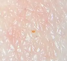 - ↑ chigger: Medical dictionary: "produces a wheal, usually with severe itching and dermatitis"
