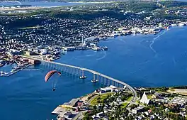 Tromsøysundet (Norwegian) or Romssanuorri (Northern Sami) is a strait located in Tromsø Municipality in Troms og Finnmark county, Norway. The 11-kilometre (6.8 mi) long strait separates the island of Tromsøya (the location of the city of Tromsø) from the mainland east of the island. The strait is crossed by the Tromsøysund Tunnel (E8 highway) and by the Tromsø Bridge. The strait ranges from about 0.6–3 kilometres (0.4–1.9 mi) wide. The strait connects to the Balsfjorden and Straumsfjorden to the south and into the Kvalsundet and Grøtsundet straits to the north.[1]
