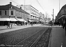 The last tram ran on 12 June,[30] carrying about 20,000 passengers. All the trams were then parked in Voldsminde Depot, while the heritage trams were moved to Munkvoll.[31] The Gråkallen Line, including the Ila Line and the St. Olavs gate loop, would be spared, and would become a heritage tramway, with a tramway museum at Munkvoll. The Class 8 trams would be stored at Voldsminde until a suitable purchaser could be found. At Voldsminde, located just beside the Nordland Line, they could be freighted away by train. With the start of roadworks in Prinsens gate on 14 June, a section of track through the city center was removed, making the tracks east of that point unusable,[31][32] and the overhead wiring was soon removed over the entire city centre–Lade section.[31]