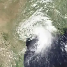 ![]() Tropical Storm Allison at peak intensity making landfall in Texas on June 26 | |