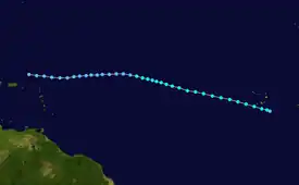 Map plotting the storm's track and intensity, according to the Saffir–Simpson scale