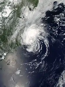 ![]() Tropical Storm Bonnie at its initial peak intensity late on May 28 | |