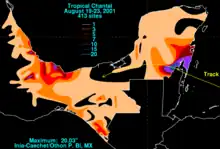 - ↑ Beven, Jack (2001-08-21). "Tropical Storm Chantal Discussion Twenty-Five". National Hurricane Center. Retrieved 2008-05-08.