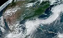 Tropical Storm Claudette was a weak tropical cyclone that caused heavy rain and tornadoes across the Southeastern United States in June 2021, leading to severe damage. The third named storm of the 2021 Atlantic hurricane season, Claudette originated from a broad trough of low pressure over the Bay of Campeche on June 12. The disturbance moved erratically over the region for the next several days, before proceeding northward with little development due to unfavorable upper-level winds and land interaction. Despite this, the National Hurricane Center (NHC) initiated advisories on it as a Potential Tropical Cyclone late on June 17, due to its imminent threat to land. The disturbance finally organized into Tropical Storm Claudette at 00:00 UTC on June 19 just before landfall in southeast Louisiana. Claudette weakened to a depression as it turned east-northeastward before moving through Mississippi, Alabama, Georgia, and South Carolina. Baroclinic forcing then caused Claudette to reintensify into a tropical storm over North Carolina early on June 21 before it accelerated into the Atlantic Ocean later that day. Soon afterward, it degenerated into a low-pressure trough on the same day, before being absorbed into another extratropical cyclone on the next day.