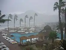 When Emilia began turning toward the Baja California Peninsula, the government of Mexico issued a tropical storm watch from Buena Vista along the Gulf of California to Bahía Magdalena along the Pacific coast. The watch was replaced with a tropical storm warning about 12 hours prior to the closest approach of the storm, and additional warnings were issued along the Pacific coastline as the storm passed. All watches and warnings were discontinued by July 27.[1] Officials prepared two schools as emergency shelters in Cabo San Lucas,[15] where 100 people stayed during the storm.[16] In the area, the threat of the storm resulted in the closure of several bars and restaurants.[15]