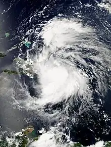 In Jamaica, one person was killed as a result of a vehicle being swept away in flood waters.[49] In total, 15 people died in the Caribbean.[2]