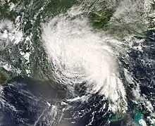 ![]() Tropical Storm Fay over Florida at peak strength on August 19 | |