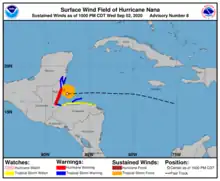 - ↑ "Tormenta tropical "Nana" amenaza a Centroamérica" (in Spanish). Deutsche Welle. September 2, 2020. Retrieved October 18, 2021.