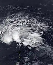 Tropical Storm Olga was an off-season tropical cyclone that impacted the Greater Antilles. The fifteenth named storm of the 2007 Atlantic hurricane season, Olga developed from a low developed east of the northernmost Lesser Antilles. It slowly acquired tropical characteristics, and late on December 10, the NHC declared it Subtropical Storm Olga while just north of Puerto Rico. It was the first post-season storm since Tropical Storm Zeta in the 2005 season, making the 2007 season one of the few with activity both before and after the official bounds of the hurricane season. Olga was only one of a few out of season tropical cyclones to make landfall. The storm made landfall on December 11 on the eastern tip of the Dominican Republic. Later that evening, Olga transitioned into a tropical storm just after making landfall. Olga tracked over Hispaniola and emerged in the Caribbean Sea. Strong wind shear and dry air caused Olga to weaken into a remnant low early on December 13.