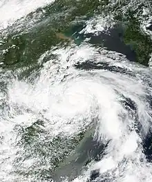 ![]() Tropical Storm Rumbia at peak intensity over East China on August 17 | |
