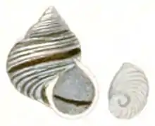 1846 drawing of the shell of Tropidophora fimbriata with its calcareous operculum by Ludwig Karl Georg Pfeiffer.