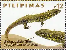 Tropidophorus misaminius, the Misamis waterside skink, is a species of skink. It is endemic to the Philippines, where it is found on several islands at elevations of 350 to 1500 m above sea level.[1] Its body is covered with pointed scales that likely deter predators. This species typically lives at the banks of streams and rivers and in forests, where they live under decayed logs. Near water they usually hide under rocks and warm up under the sun on those rocks when there is no danger around.[2]