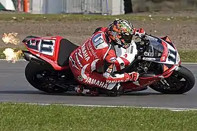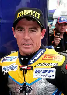 Troy Gordon Corser (born 27 November 1971) is an Australian former professional motorcycle road racer. He competed in the Superbike World Championship from 1992 to 2011 except for the 1997 season when he competed in Grand Prix motorcycle racing.[1] Corser won the Superbike World championship in 1996 and 2005.[1] He held the record for most World Superbike Championship race starts with 377 until 2023 when another Superbike legend Jonathan Rea overtook him.[2]