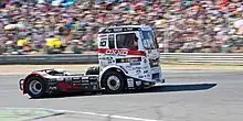 Truck racing is a form of motorsport road racing which involves modified versions of heavy tractor units on road racing or oval track circuits.