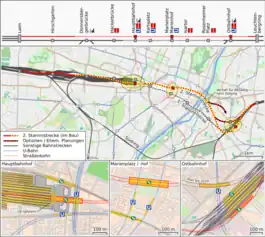Trunk Line 2 (German: Zweite Stammstrecke, lit. 'Second Trunk Line') is an under-construction double track commuter rail tunnel in the Bavarian capital of Munich, Germany.