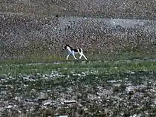 Due to the salinity of the Tso Kar, most of the resident fauna is found in its tributaries and in Startsapuk Tso. There are large breeding colonies of grebes and brown-headed gulls, and some bar-headed geese, ruddy shelducks and terns. In the vicinity of the lake black-necked cranes and Tibetan grouse are relatively common. The basin of the Tso Kar and the adjoining More Plains constitute one of the most important habitats of the kiang, Tibetan gazelles, Tibetan wolves and foxes; there are himalayan marmots in the higher reaches. Yaks and horses are kept by nomads.[7][8]