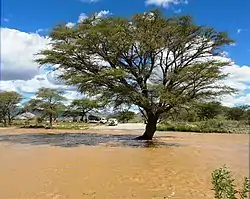 The Tsondab River is an ephemeral river in the Hardap Region of central Namibia. Its source is in the Remhoogte Mountains. From there it flows westwards through the Namib-Naukluft National Park before evaporating at Tsondabvlei. Inflows of the Tsondab are Diep, Noab and Koireb. Tsondab's catchment area (including its tributaries) is 3,500 km2 (1,400 sq mi).[1][2]