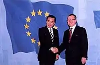 Tsutomu Hata (羽田 孜, Hata Tsutomu, 24 August 1935 – 28 August 2017) was a Japanese politician who served as Prime Minister of Japan for nine weeks in 1994.[1] He took over from Morihiro Hosokawa at the head of a coalition government. Shortly after he had been appointed Prime Minister, the Japanese Socialist Party left the government, leading to his early departure from office. He was a member of the lower house representing Nagano district #3. He was elected 14 times, retiring in 2012.[2]
