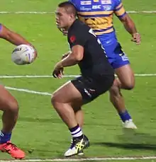 Lolohea was again named in the Warriors' Auckland Nines squad.[10] In Round 3 against the Parramatta Eels, Lolohea scored his first NRL try in the Warriors 29-16 win at Mt Smart Stadium.[11] On 2 May, he played fullback for Tonga against Samoa in the Polynesian Cup, in Tonga's 18-16 loss at Cbus Super Stadium.[12][13] In round 18, against the Melbourne Storm, Lolohea scored one of the best tries of the 2015 season when he finished a sensational team effort; Nathan Friend was upended and displayed his best acrobatic moves when he chased a Chad Townsend bomb kick and delivered a stunning back flip pass to Sam Tomkins, the ball passed between further Warriors before Lolohea scored in the corner.[14] Lolohea finished the season with 23 matches, 11 tries and 13 goals, while mid-season his contract was extended until the end of 2018.[15]