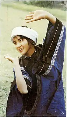 The Tujia are renowned for their singing and song composing abilities and for their tradition of the Baishou dance (摆手舞), a 500-year-old collective dance which uses 70 ritual gestures to represent war, farming, hunting, courtship and other aspects of traditional life. They are also famous for their richly patterned brocade, known as xilankapu, a product that in earlier days regularly figured in their tribute payments to the Chinese court. For their spring festival they prepare handmade glutinous rice cakes called ciba cake. They gather round the fire to sing folk songs and eat grilled ciba.[5]